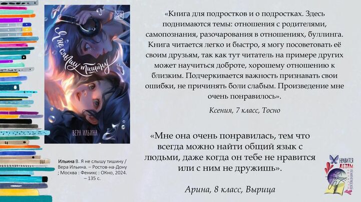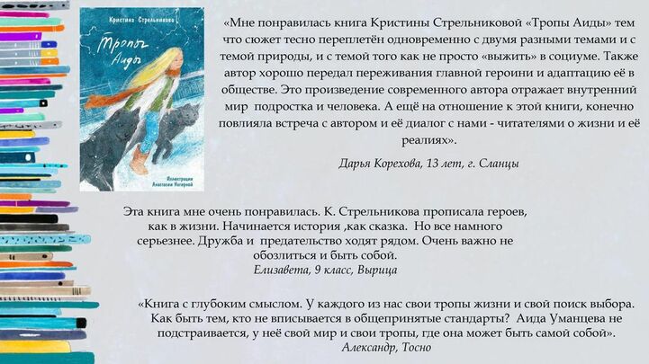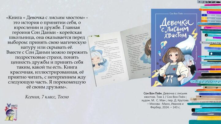 Меняем мир книгойМеняем мир книгой: виртуальная выставка книг-претендентов на ЗНАК "Нравится детям Ленинградской области"/ сост. Л.О.Егорова.-Текст: электронный// Региональный сайт детских библиотек / Ленинградская областная детская библиотека.-Санкт-Петербург, 2025.-URL: https://deti.spb.ru/exhibition/id123/.–Дата публикации: 15.12.2025.